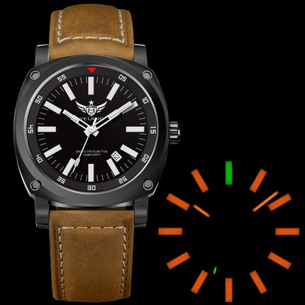 5分钟前野狼手表男H3自发光全自动机械表 - 幻影黑-啡色皮带款-橙光款