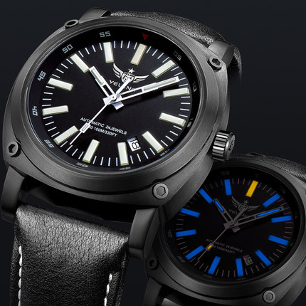 3分钟前野狼手表男H3自发光全自动机械表 - 幻影黑-黑色皮带款-蓝光
